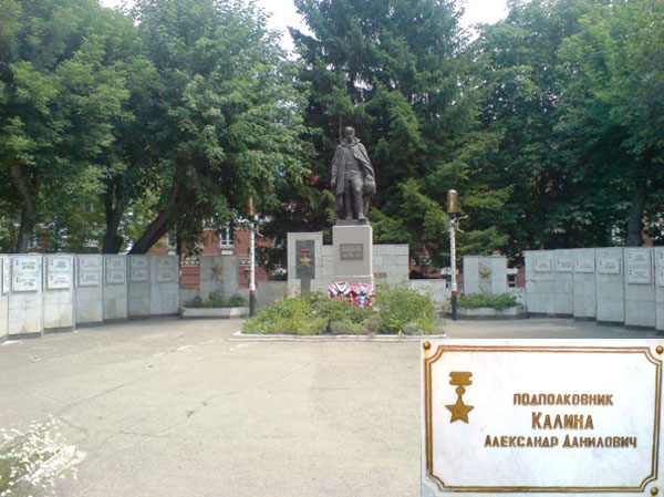 На территории Вольского высшего военного училища тыла установлена мемориальная доска А.Д.Калине. В городе Днепродзержинск на проходной Днепровского металлургического комбината, на котором он работал, установлена мемориальная доска.