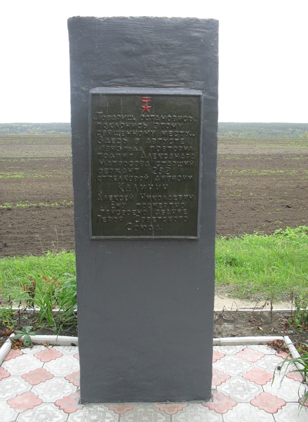Помощник командира взвода 2-го батальона 764-го стрелкового полка (232-я стрелковая дивизия, 38-я армия, Воронежский фронт) комсомолец старший сержант Алексей Калинин 9 августа 1943 года в бою при прорыве вражеской обороны в районе хутора Волковка (ныне в черте посёлка городского типа Краснополье) Сумской области Украины совершил беспримерный подвиг.