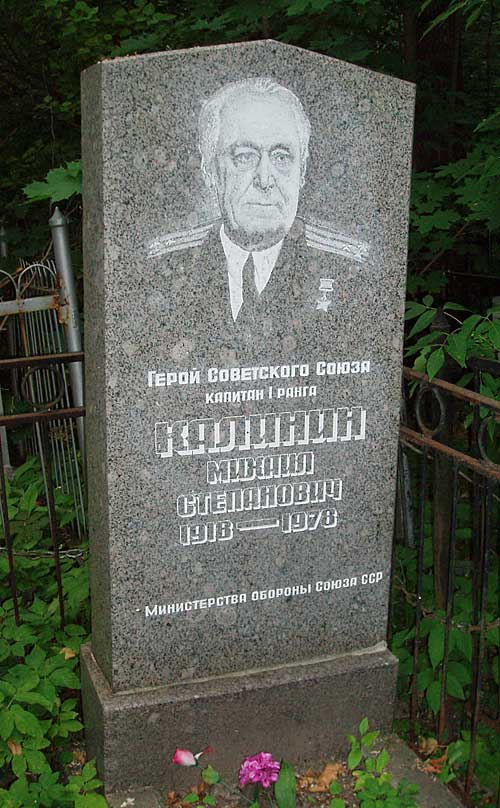 Калинин Михаил Степанович - командир подводной лодки (ПЛ) "Щ-307" 3-го дивизиона подводных лодок Краснознамённого Балтийского флота, капитан-лейтенант.