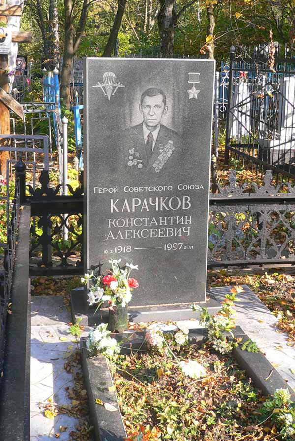 Карачков Константин Алексеевич - старшина батареи 76-миллиметровых пушек 6-го гвардейского воздушно-десантного полка (1-я гвардейская Звенигородская воздушно-десантная дивизия, 53-я армия, 2-й Украинский фронт), гвардии старшина.
