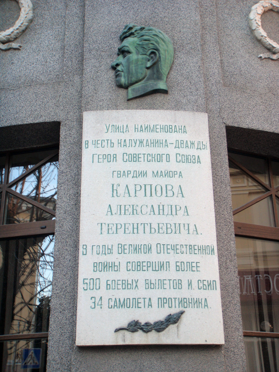 Бронзовый бюст дважды Героя Советского Союза Карпова А.Т. установлен в городе Калуге, где ежегодно в октябре проводятся Дни его памяти, и где его имя носит профессиональное училище №1. Его имя носит улица в Калуге, на которой установлена мемориальная доска.