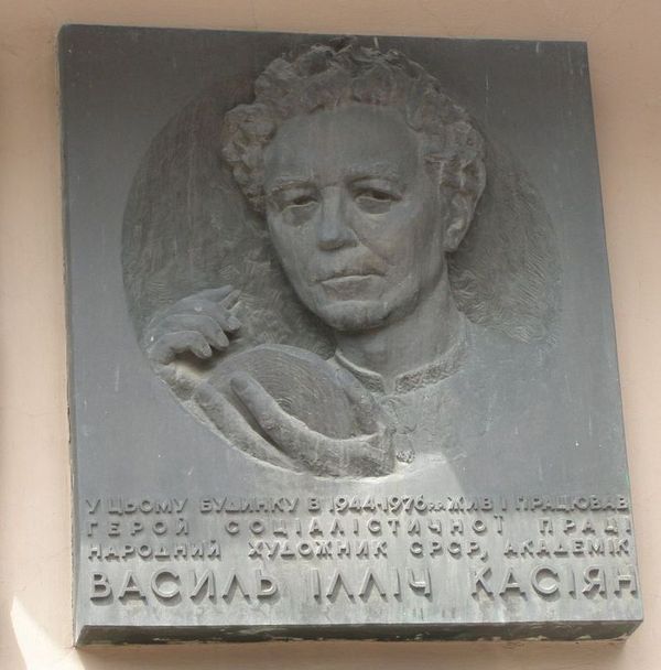 Установлена в Киеве (Украина) на доме (улица Владимирская, дом 14), в котором в 1944-1976 годах жил и работал В.И.Касиян. Скульптор А.А.Ковалёв. Открыта в 1977 году. Фото Олега Кожухаря, июль 2009.