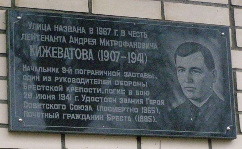 Кижеватов Андрей Митрофанович - начальник 9-й пограничной заставы 17-го Брестского пограничного отряда войск Народного Комиссариата внутренних дел (НКВД) СССР, лейтенант.