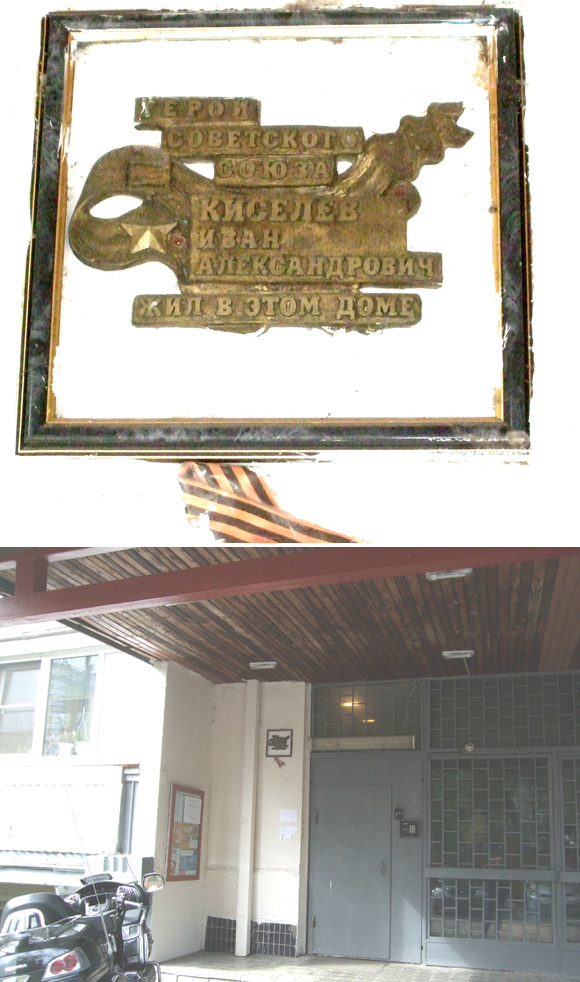 В Москве, на доме где жил Герой, установлена мемориальная доска.