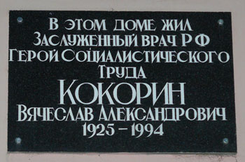 В городе Шуе, на доме где жил доктор Кокорин, установлена мемориальная доска.