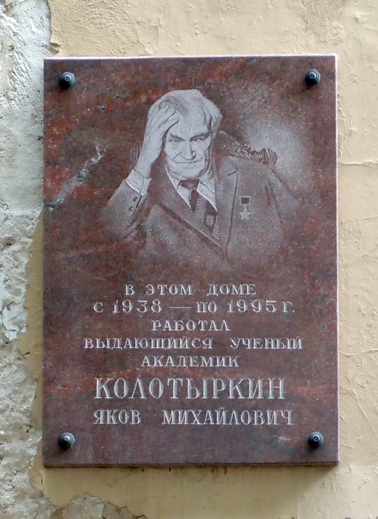 Колотыркин Яков Михайлович - учёный в области физико-химии, директор Научно-исследовательского физико-химического института имени Л.Я. Карпова Академии наук СССР, академик Академии наук СССР.