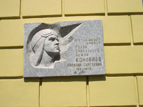 Заместитель командира эскадрильи 291-го истребительного авиационного полка (265-я истребительная авиационная дивизия, 8-я воздушная армия, Южный фронт) кандидат в члены ВКП(б) младший лейтенант Василий Конобаев в период с 20 апреля по 3 июня 1943 года совершил 56 боевых вылетов, в 35 воздушных боях лично сбил 17 и в составе группы 2 самолёта противника.