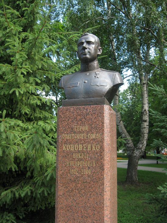 Кононенко Никита Никифорович - штурман 179-го гвардейского Трансильванского истребительного авиационного полка 14-й гвардейской Краснознаменной истребительной авиационной дивизии 5-й воздушной армии 2-го Украинского фронта, гвардии капитан.
