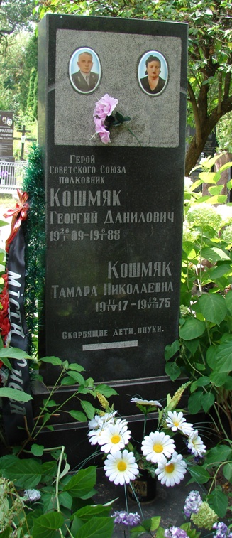 Указом Президиума Верховного Совета СССР от 17 октября 1943 года за умелое командование полком, личные мужество и героизм, проявленные при удержании плацдарма на правом берегу Днепра гвардии майору Георгию Даниловичу Кошмяку присвоено звание Героя Советского Союза с вручением ордена Ленина и медали "Золотая Звезда" (№ 2853).