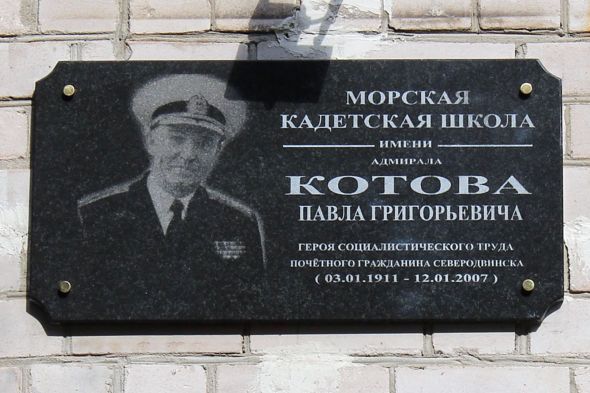 25 октября 2011 года Морской кадетской школе города Северодвинска было присвоено имя адмирала П.Г.Котова, а 28 октября 2011 года на фасаде знания школы была открыта мемориальная доска в его честь.