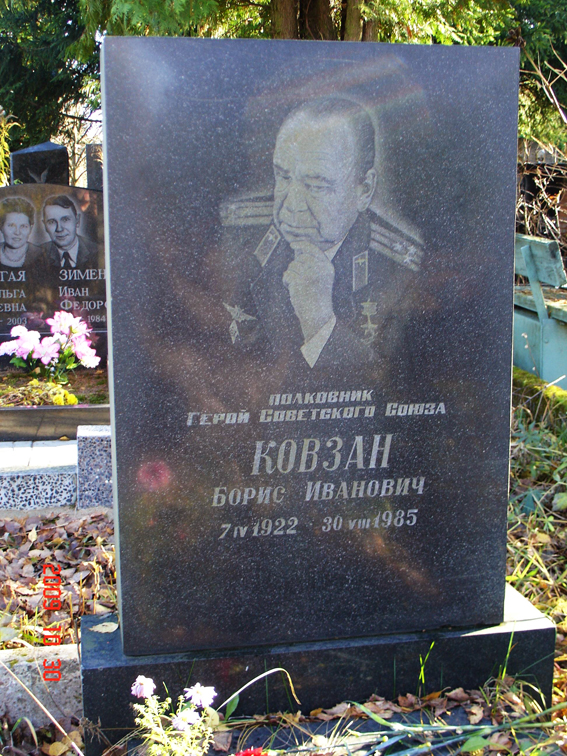 Ковзан Борис Иванович - лётчик 744-го истребительного авиационного полка 240-й истребительной авиационной дивизии 6-й воздушной армии Северо-Западного фронта, капитан; единственный советский лётчик-истребитель, совершивший в боях четыре воздушных тарана.