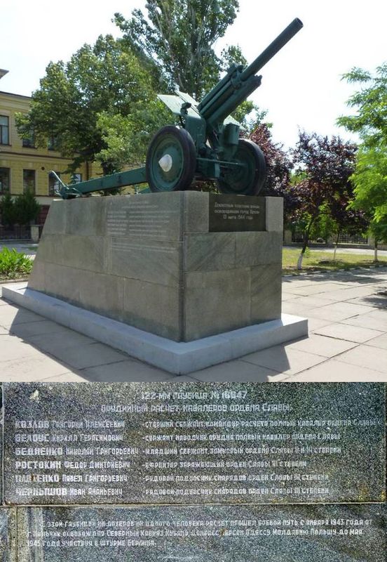 Орудие Г.А.Козлова установлено перед краеведческим музеем в городе Херсон (Украина).