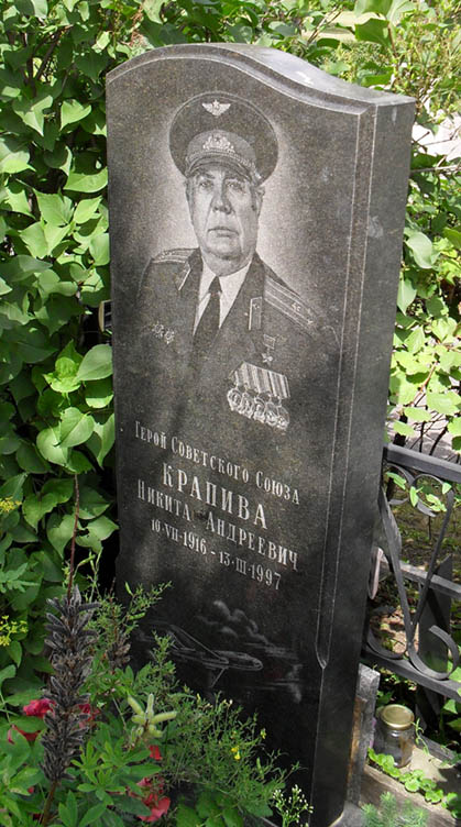 Заместитель командира эскадрильи 27-го гвардейского авиационного полка (4-й гвардейский авиационный корпус, авиация дальнего действия (АДД)) гвардии майор Никита Крапива к 16 октябрю 1944 года совершил 205 боевых вылетов на бомбардировку военно-промышленных центров в глубоком тылу противника, уничтожение его живой силы и техники. Сбил 3 самолета противника.