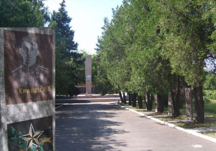 В городе Васильевка Запорожской области на Аллее Памяти установлен памятный знак Герою.