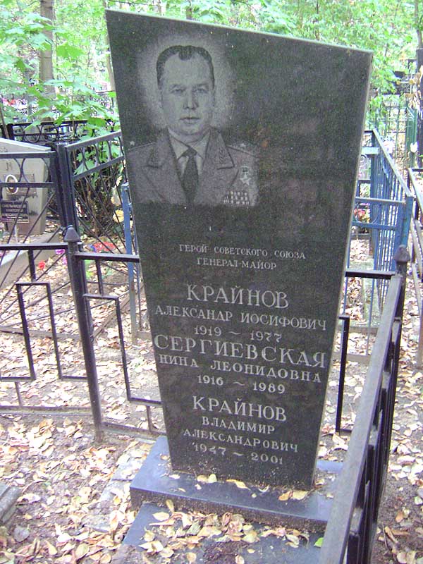 21 мая 1977 года генерал-майор Крайнов погиб в автомобильной катастрофе. Похоронен в городе-герое Москве на Кузьминском кладбище (участок 50).