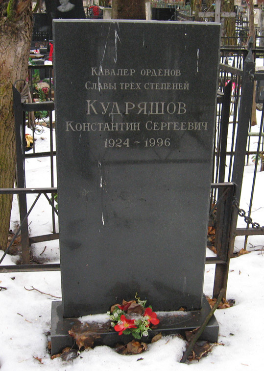 Указом Президиума Верховного Совета СССР от 24 октября 1966 года за образцовое выполнение заданий командования в боях с немецко-фашистскими захватчиками Кудряшов Константин Сергеевич перенаграждён орденом Славы 1-й степени (№ 2637), став полным кавалером ордена Славы.