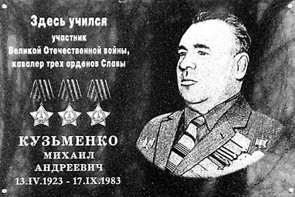 На здании школы села Криничное Россошанского района Воронежской области, в которой учился М.А. Кузьменко, установлена мемориальная доска.