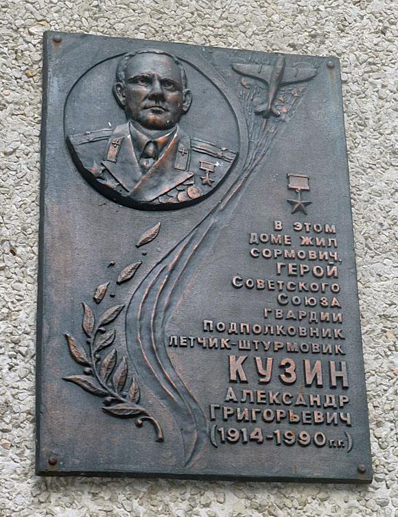 Кузин Александр Григорьевич - штурман 90-го гвардейского штурмового Староконстантиновского Краснознамённого авиационного полка 4-й гвардейской штурмовой Киевской Краснознамённой ордена Кутузова авиационной дивизии 5-го штурмового Винницкого Краснознамённого орденов Кутузова и Богдана Хмельницкого авиационного корпуса 2-й воздушной армии 1-го Украинского фронта, гвардии майор.
