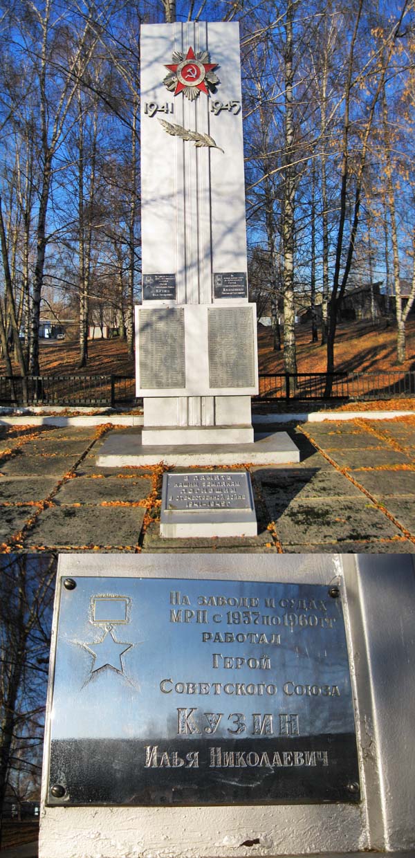 В селе Шиморское на здании судоремонтного завода установлена мемориальная доска в память о Герое Советского Союза И. Н. Кузине.