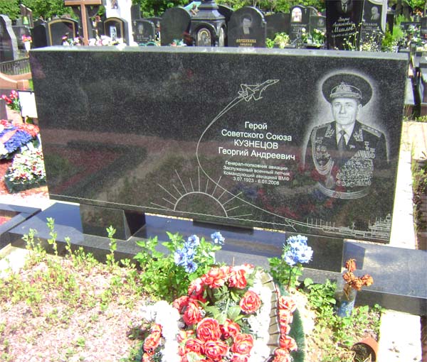 Герой Советского Союза, Заслуженный военный лётчик СССР, лауреат Ленинской премии (1982 год), генерал-полковник авиации в отставке Кузнецов Г.А. ушёл из жизни 8 января 2008 года. Похоронен 11 января 2008 года на Троекуровском кладбище города Москвы (участок 7).