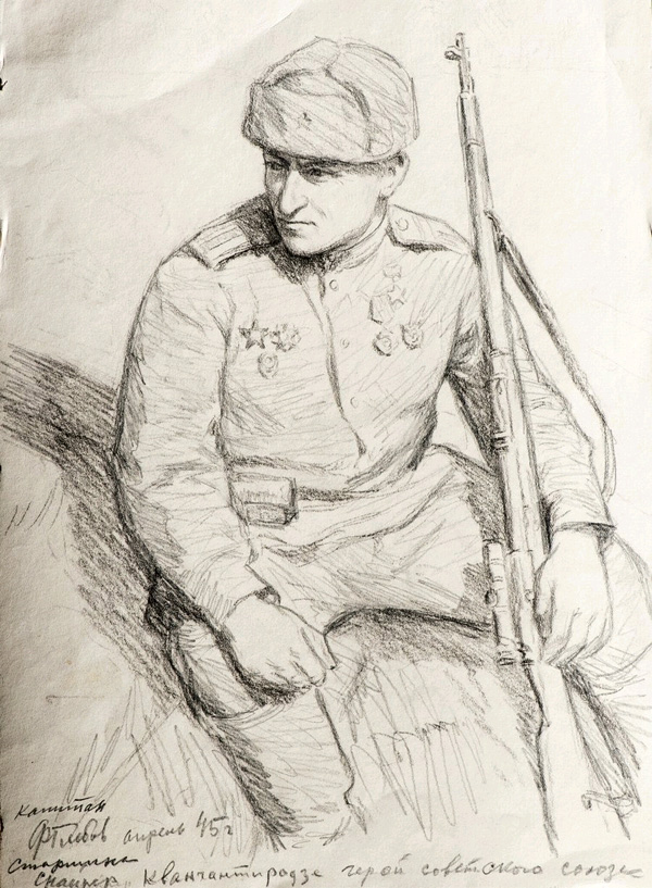 Квачантирадзе Василий Шалвович - снайпер 259-го стрелкового полка 179-й стрелковой дивизии 43-й армии 1-го Прибалтийского фронта, старшина.