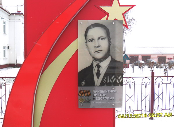 В городе Лиозно на аллее Славы установлена стела в честь В. Ф. Ландыченко.