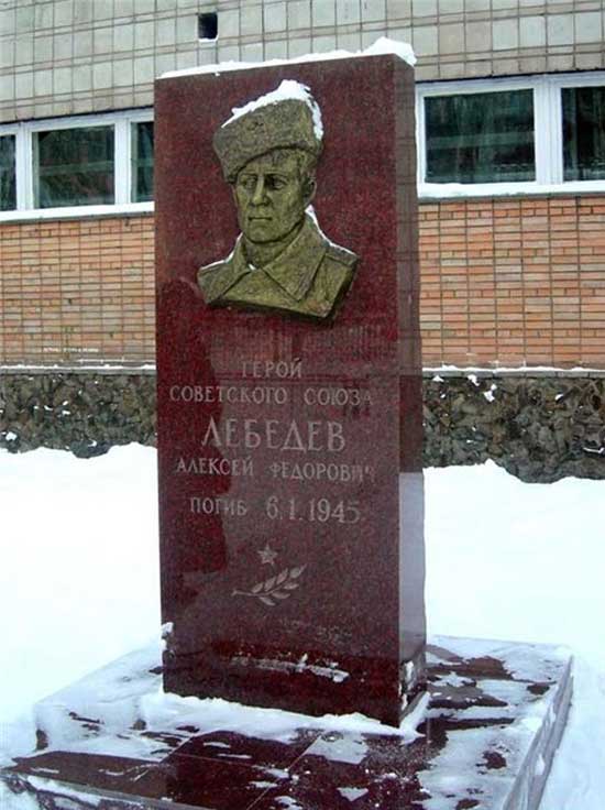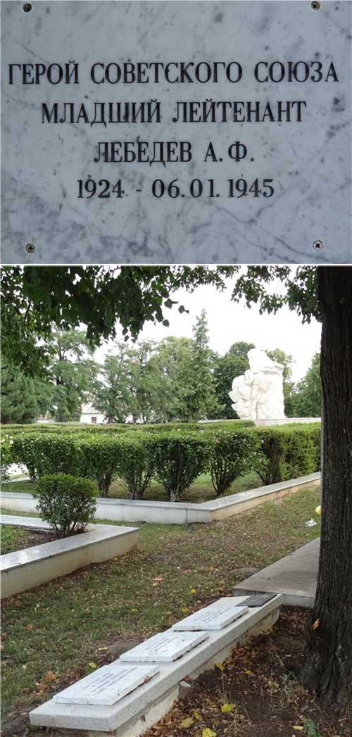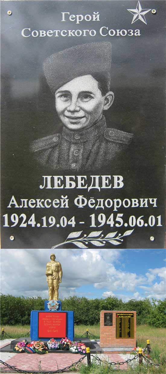 Лебедев (настоящая фамилия Лебедь) Алексей Фёдорович - командир взвода 677-го стрелкового полка 409-й стрелковой кировоградской дивизии 7-й гвардейской армии 2-го Украинского фронта, младший лейтенант.