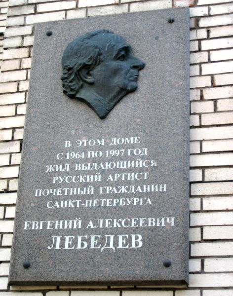 В Санкт-Петербурге на фасаде дома № 6 по Петровской набережной, где в 1964-1997 годах жил Е.А.Лебедев, установлена мемориальная доска. Его именем назван Драматический театр в городе Балаково.