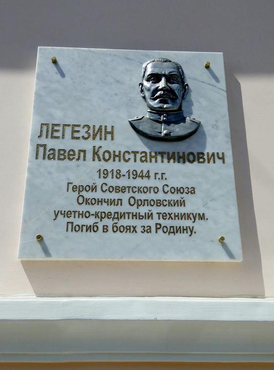 В посёлке городского типа Прохоровка на Аллее Героев П.К.Легезину установлен бюст, в селе Журавка - обелиск, в Орле на здании бывшего финансово-экономического техникума - мемориальная доска.