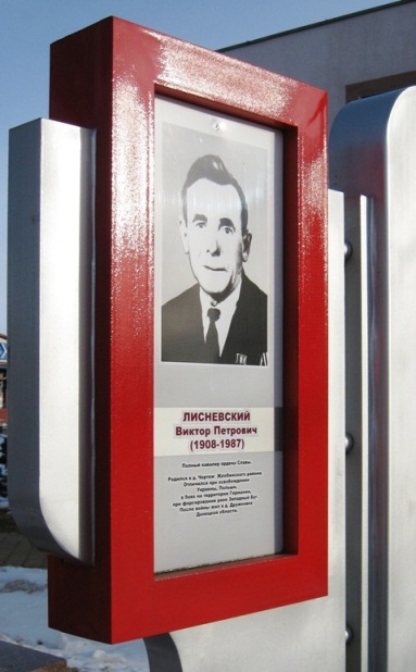 Лисневский (или Лесневский) Виктор Петрович – командир стрелкового отделения 244-го стрелкового полка 41-й стрелковой Краснознамённой дивизии (91-й стрелковый Краснознамённый корпус, 69-я армия, 1-й Белорусский фронт), младший сержант – на момент представления к награждению орденом Славы 1-й степени.