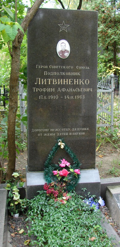 За образцовое выполнение боевых заданий командования на фронте борьбы с немецкими захватчиками и проявленные при этом отвагу и геройство указом Президиума Верховного Совета СССР от 2 ноября 1944 года майору Трофиму Афанасьевичу Литвиненко присвоено звание Героя Советского Союза с вручением ордена Ленина и медали "Золотая Звезда".