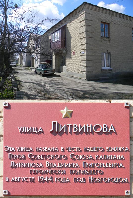 Имя Героя Советского Союза Владимира Литвинова увековечено в названии одной из улиц города Чугуева, высечено на памятном знаке воинам-землякам.
