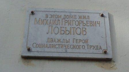 Установлена в городе Вологда на доме (улица Октябрьская, 6), в котором жил М.Г.Лобытов. Фото Кащеева Сергея Леонидовича (город Вольск Саратовской области), 21.06.2011.