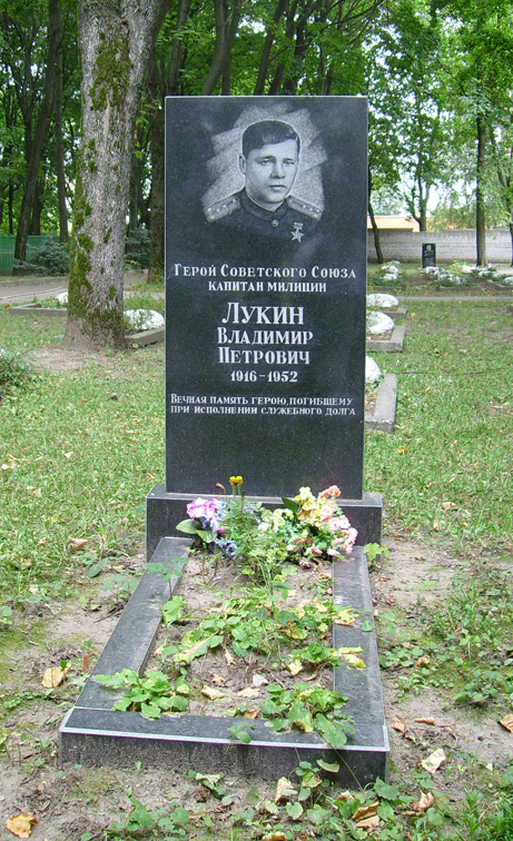 С мая 1949 года работал в милиции инспектором уголовного розыска. Капитан милиции В.П.Лукин погиб 10 мая 1952 года при задержании опасного преступника. Похоронен на Никитском кладбище в Курске.