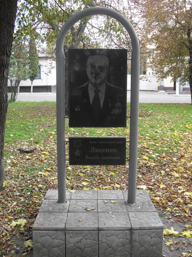 В посёлке городского типа Короп на Аллее Героев установлен памятный знак В.И.Лысенко.