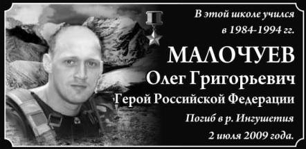 За мужество и героизм, проявленные при выполнении воинского долга в Северо-Кавказском регионе, Указом Президента Российской Федерации от 20 сентября 2009 года капитану милиции Малочуеву Олегу Григорьевичу присвоено звание Героя Российской Федерации (посмертно).