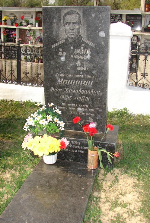 Манукян Акоп Балабекович - помощник командира 402-го Севастопольского истребительного авиационного полка по воздушно-стрелковой службе 265-й Мелитопольской истребительной авиационной дивизии 3-го истребительного авиационного корпуса 16-й воздушной армии 1-го Белорусского фронта, капитан.