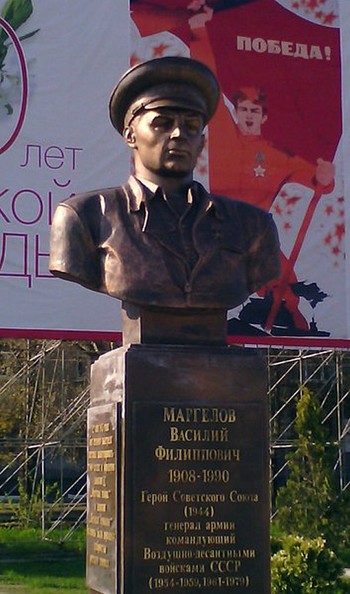 Маргелов Василий Филиппович – командир 49-й гвардейской стрелковой дивизии 28-й армии 3-го Украинского фронта, гвардии полковник.