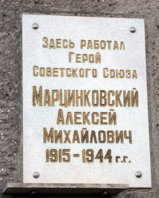 Марцинковский (в ряде документов – Марценковский) Алексей Михайлович – заместитель командира по артиллерии 109-го стрелкового полка (74-я стрелковая дивизия, 26-я армия, 3-й Украинский фронт), капитан.