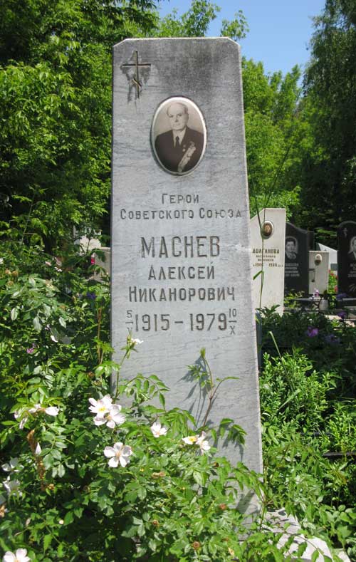 Маснев Алексей Никанорович командир эскадрильи 13-го истребительного авиационного полка (201-я истребительная авиационная дивизия, 2-й смешанный авиационный корпус, 4-я воздушная армия, Северо-Кавказский фронт) капитан.