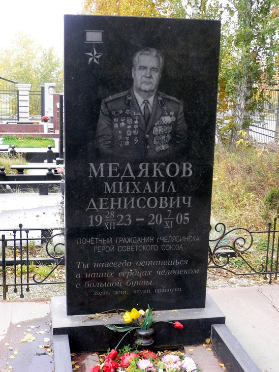 Последний Герой Советского Союза, проживавший в Челябинской области, М.Д. Медяков скончался 7 ноября 2005 года. Похоронен 10 ноября 2005 года на Успенском (Цинковом) кладбище Челябинска.