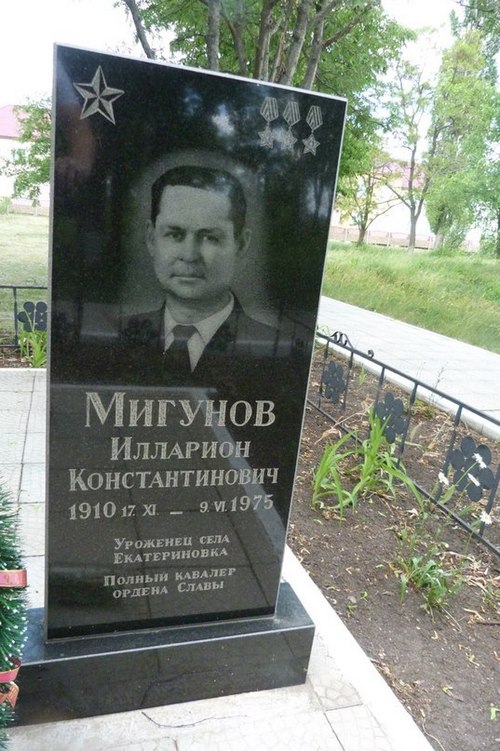 Мемориальная плита в честь И. К. Мигунова установлена у обелиска погибшим в годы Великой Отечественной войны односельчанам в селе Екатериновка.