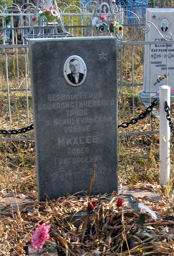 Указом Президиума Верховного Совета СССР от 27 апреля 1951 года за достижение в 1950 году высоких показателей на уборке и обмолоте зерновых и масличных культур и семян трав Михееву Павлу Григорьевичу присвоено звание Героя Социалистического Труда с вручением ордена Ленина и золотой медали «Серп и Молот».