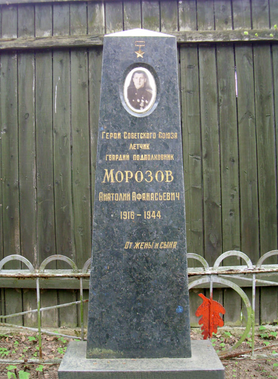 Командир 9-го гвардейского истребительного авиационного полка гвардии подполковник Морозов А.А. трагически погиб 18 июня 1944 года. Похоронен в городе Щёлково Московской области. Всего успел сбить лично 11 и в группе 6 самолётов противника.