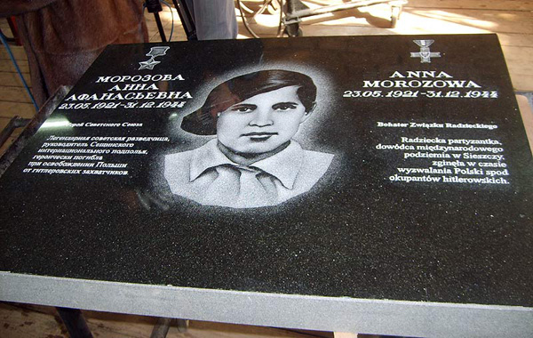 Морозова Анна Афанасьевна - руководитель подпольной интернациональной советско-польско-чехословацкой организации в составе 1-й Клетнянской партизанской бригады; боец разведывательной группы разведывательного отдела штаба 10-й армии.