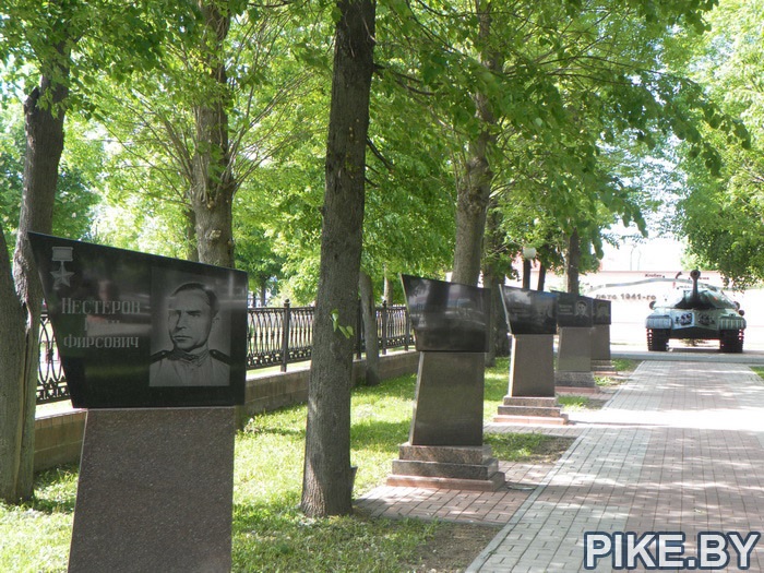 Имя и портрет И.Ф. Нестерова увековечены на мраморной плите Аллеи Героев в Шклове.