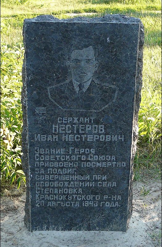 Отважный артиллерист Иван Нестерович Нестеров со своим боевым товарищем вёл огонь по вражеским танкам до тех пор, пока не погиб. Похоронен в центре села Пархомовка Краснокутского района Харьковской области.