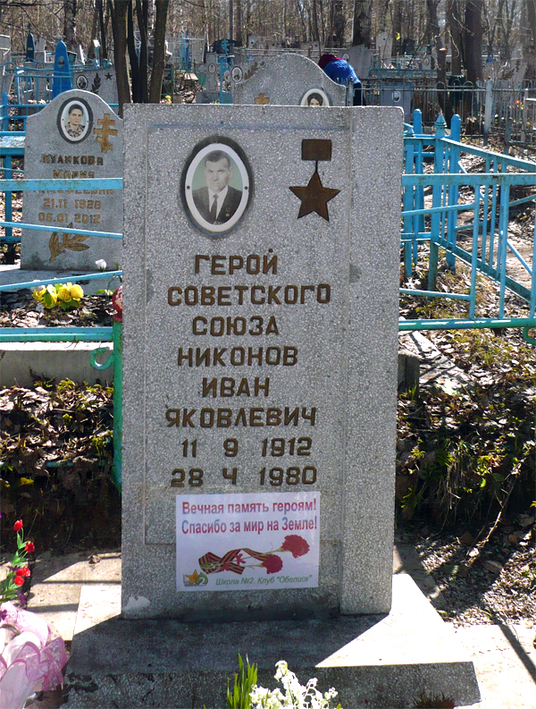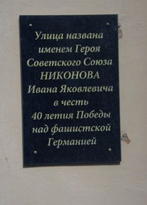 Указом Президиума Верховного Совета СССР от 10 апреля 1945 года за образцовое выполнение боевых заданий командования на фронте борьбы с немецко-фашистскими захватчиками и проявленные при этом мужество и героизм гвардии старшине Никонову Ивану Яковлевичу присвоено звание Героя Советского Союза с вручением ордена Ленина и медали «Золотая Звезда».