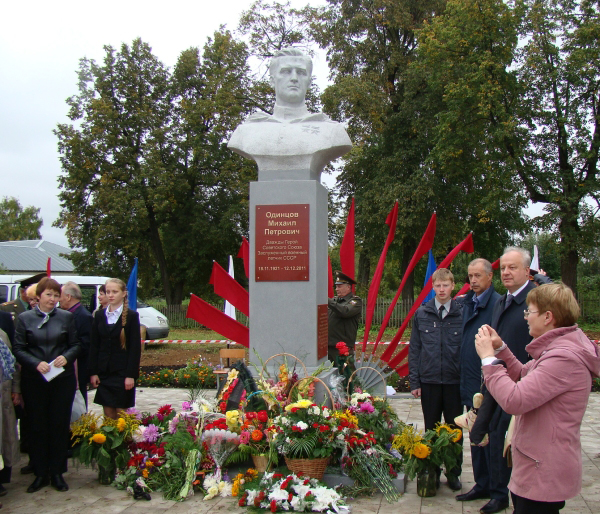 Бронзовый бюст М.П.Одинцова установлен в Екатеринбурге, там же на здании школы, где он учился, установлена мемориальная доска. В селе Полозово установлен бюст М.П.Одинцова.