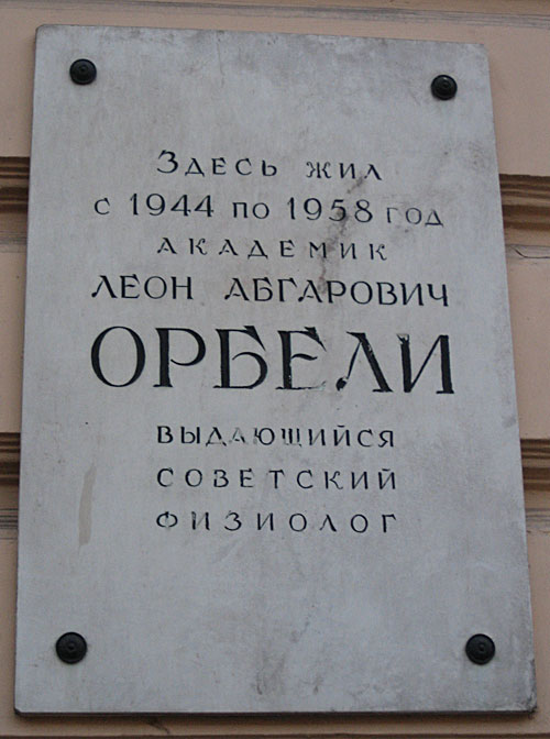 Орбели Леон (Левой) Абгарович – физиолог, академик Академии наук СССР, академик Академии медицинских наук СССР, вице-президент АН СССР, академик-секретарь Отделения биологических наук АН СССР, начальник Военно-медицинской академии РККА имени С.М.Кирова, директор Физиологического института имени И.П.Павлова АН СССР, директор Института эволюционной физиологии и патологии высшей нервной деятельности имени И.П.Павлова АМН СССР, генерал-полковник медицинской службы.